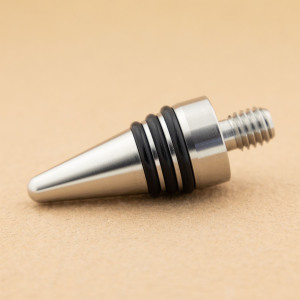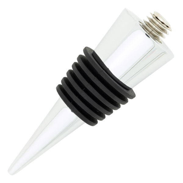 This chrome-plated bottle stopper kit features a sleek cone-shaped design measuring 2-3/4" long. It includes a 3/8"-16 tpi threaded stud for secure mounting and durable performance.