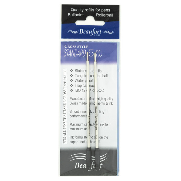 Each pack contains two black, medium-point Cross-style ballpoint refills ready for installation in your favourite pen.