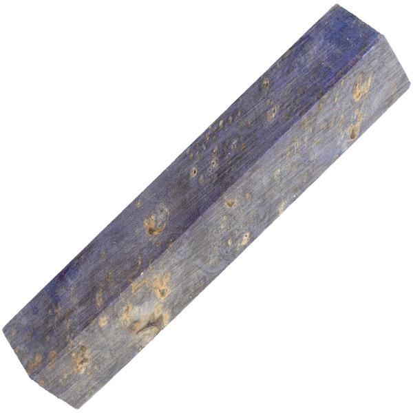 The blank in the picture has been sanded to show the figuring. Your blanks will be selected at random. The blank in the photograph is representative only. Some colour variability is to be expected - this is because different blanks have different densities that will affect how the wood absorbs resin and dye. We do not offer refunds for colour variability within the blank or other slight internal imperfections.