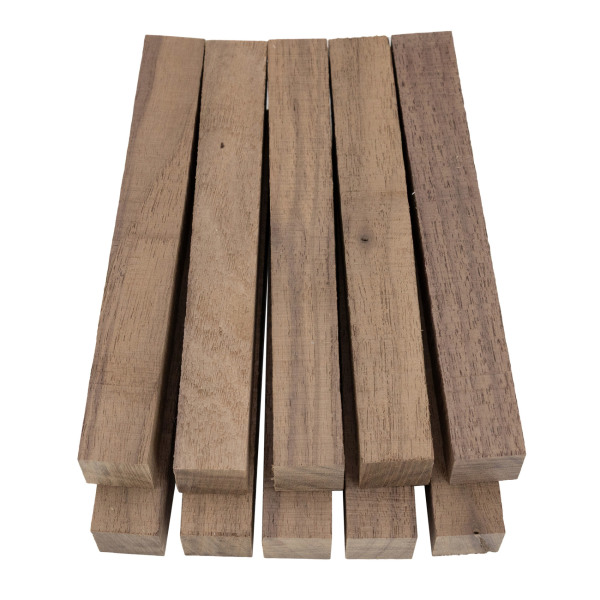 Ten-pack bundle of Walnut pen blanks. Approximate dimensions 5/8" square by 5" long. Product of Canada.